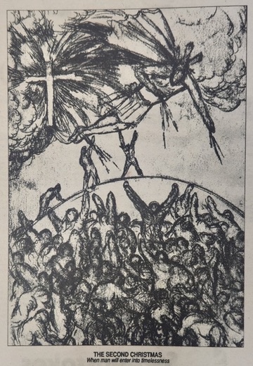 The First Christmas had Christ coming to earth as a child, as a scion of David, as teacher and savior. The Second Christmas will have him coming as judge and king: he will reign on earth for a thousand years. Then time will cease, the universe will dissolve, and those he has picked will follow Christ to heaven.