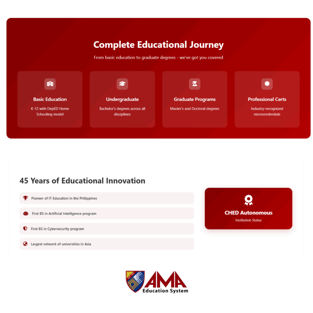 At the core of this initiative is AMA University, a CHED-conferred Autonomous Institution. With 45 years of delivering education, AMA has achieved a series of firsts: