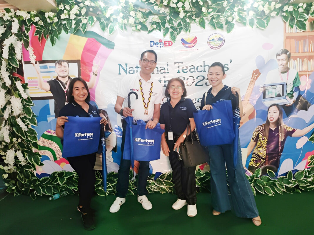 Fortune Life AVP for Mindanao Sales Edelyn Mondejar, together with our dedicated agents of General Santos branch, joined Director III Mario Bermudez of Bureau of Human Resource and Organizational Development (BHROD) Central Office at the NTM celebration, where they presented him with corporate giveaways as a token of appreciation. Fortune Life’s presence reinforced its enduring support for education and its belief in empowering our dear teachers.