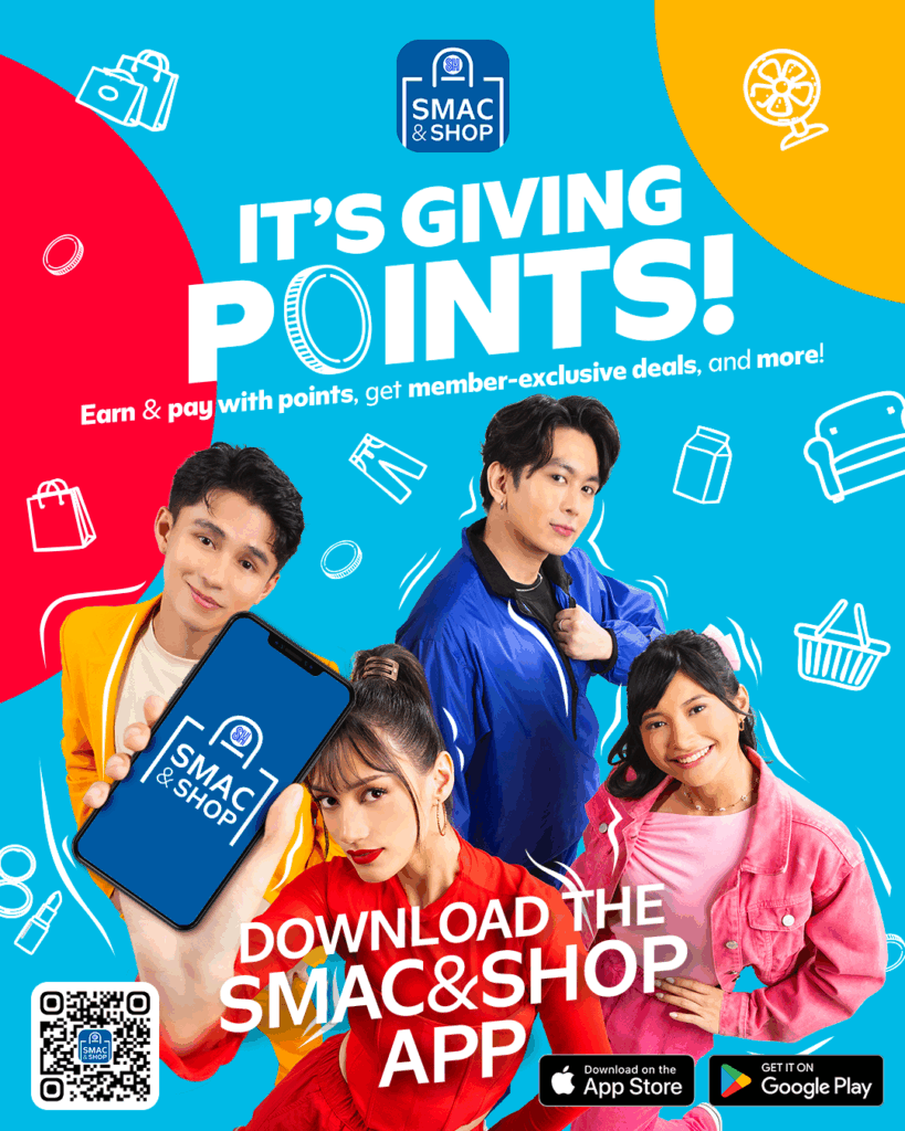 Did you know that you can get up to extra 50 SMAC Points when you use the SMAC&SHOP app? You get 10 SMAC Points just by signing up for the app, and extra 20 SMAC Points with a minimum P2,000 spend when you use your virtual SMAC at SM Store and SM Markets from October 1 to November 30, 2025!