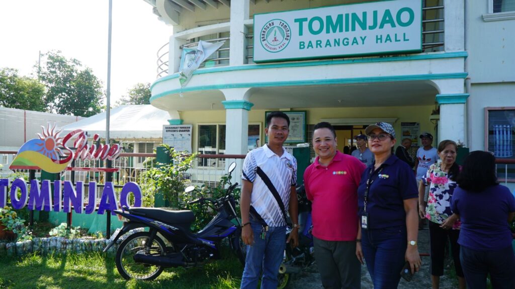 Branch Managers, Judaline Geraldez of BingoPlus Park Mall and Mark Gibson Dingal of BingoPlus SM City Cebu, partnering with (left) Hon. Arnel Tagalog, Councilor and acting Barangay Captain of Tominjao in Daanbantayan and (right) Hon. Raul Remulta, Barangay Captain of Caputatan in Medellin.