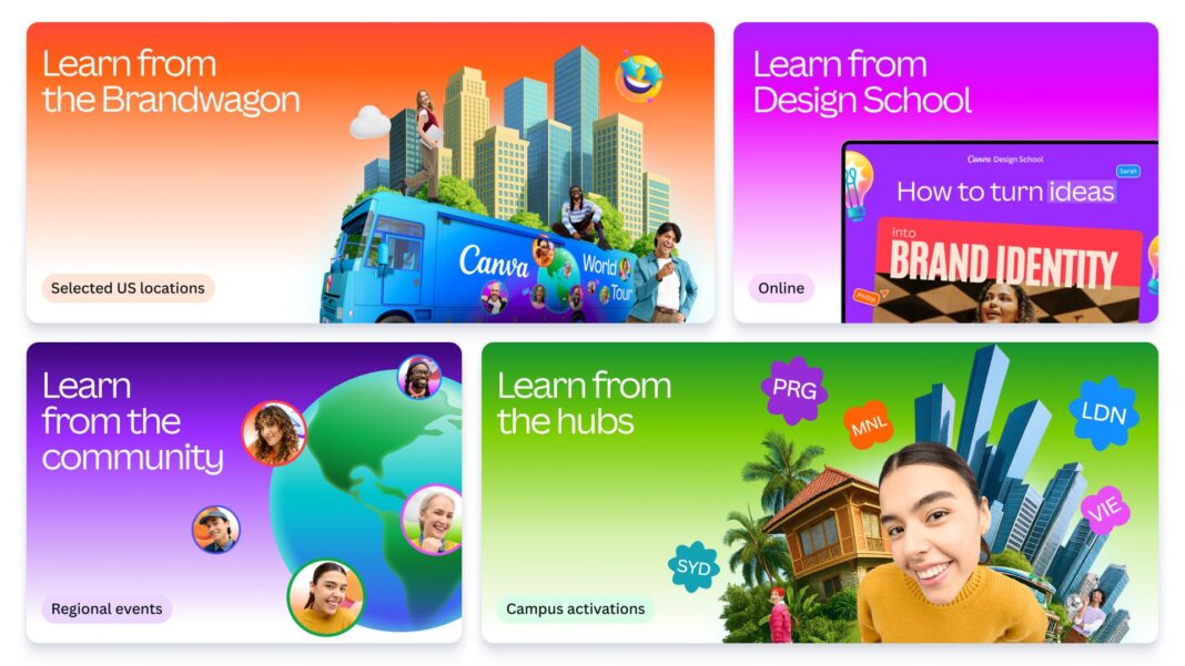 The Canva World Tour runs throughout October, traveling through global business hubs, university campuses, and community spaces, with both in-person and online options to make participation possible from anywhere.