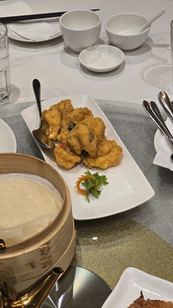 One of the most surprising is the Crispy-fried Crystal Prawns tossed with Salted Egg Yolk. Honestly, I didn’t expect anything from it in the beginning. It was set in between the steamed red bean paste bun—cute “panda siopaos,” as I call them—and a bowl of fried rice cooked in Yang Zhou style.