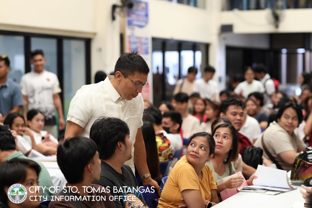 City of Sto. Tomas Batangas Mayor Arth Jhun Aguilar Marasigan shares light moments with more than 300 job seekers looking for employment during the local recruitment program held at the city hall compound. The city Public Employment Services Office (PESO) said that at least 30% of job hunters were hired during the event. Aside from local recruitment as requested by partner entities, the city’s recruitment arm conducts a quarterly mega job fair that hires job seekers on the spot.