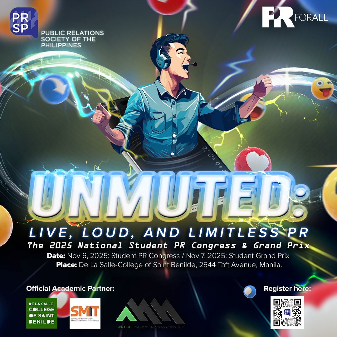 The Student PR Congress and Grand Prix will take place on November 6-7, 2025 at De la Salle College of St. Benilde, 2544 Taft Avenue, Manila This event is a critical networking opportunity, bringing together students, academics, and industry veterans for a day of learning, inspiration, and competition.