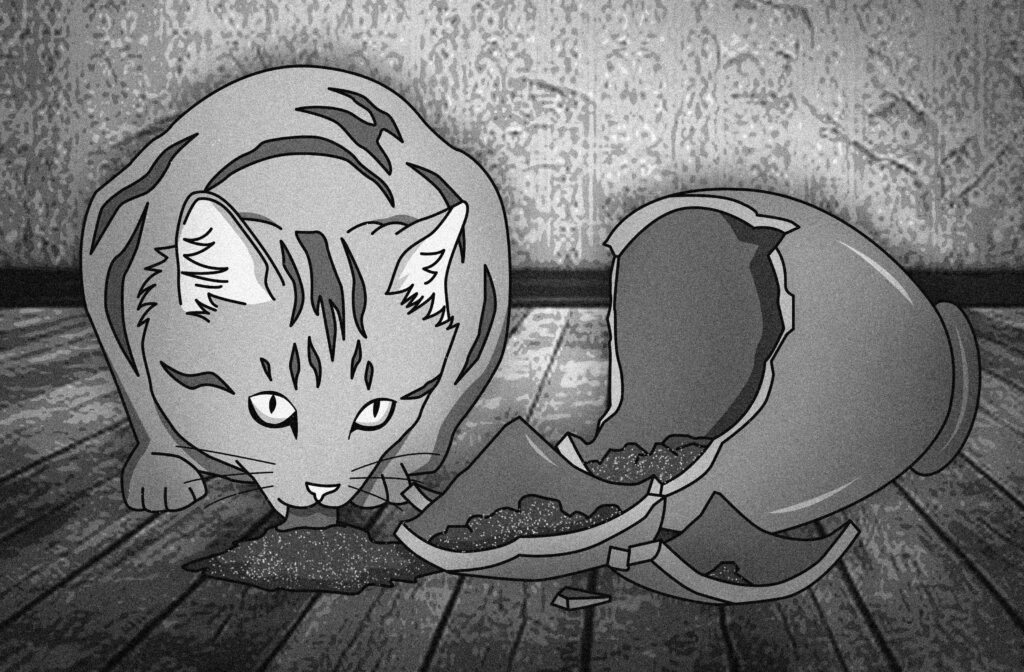 The cats , however, will find out that the hoomans have chosen to cremate Hector. The hoomans come back to the house after a few days, and put Hector’s urn on top of a console table.