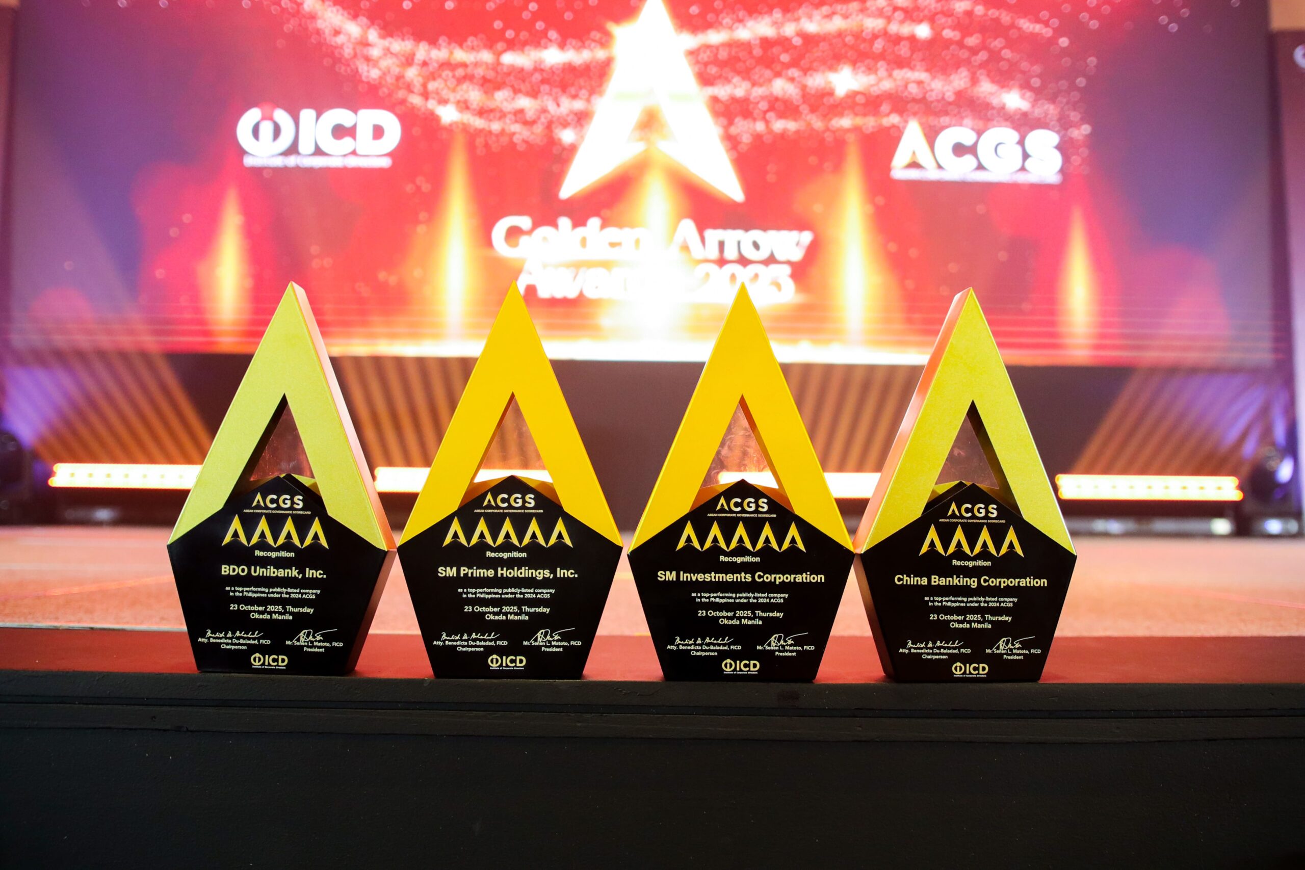 The ICD 2025 Golden Arrow Awards recognized the Philippines’ top publicly listed companies (PLCs) on Thursday. Alongside SM Investments, SM Prime Holdings, Inc. (SM Prime) also received a 5 Golden Arrow Award, while other companies within the SM Group, including BDO Unibank, Inc., China Banking Corporation, Belle Corporation, Atlas Consolidated Mining and Development Corporation, APC Group, Inc., and Pacific Online Systems Corporation were among this year’s awardees.