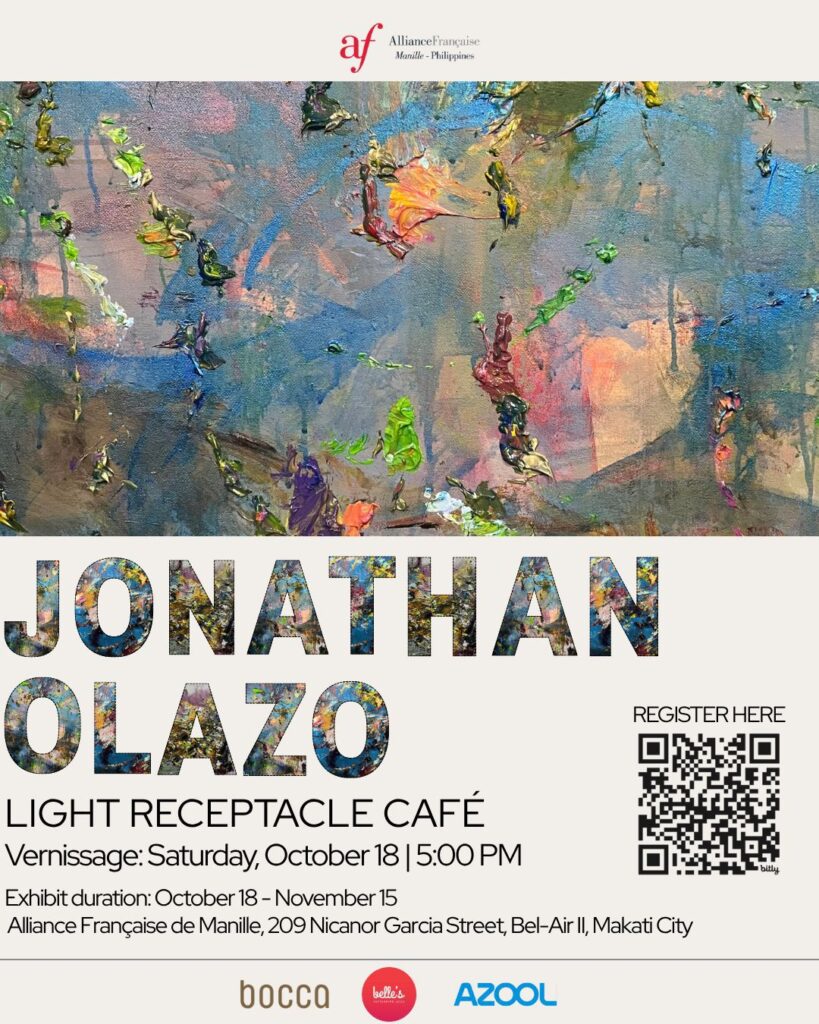The “Light Receptacle Café” runs until November 15 at the Alliance Française de Manille, 209 Nicanor Garcia Street, Bel-Air II, Makati City.