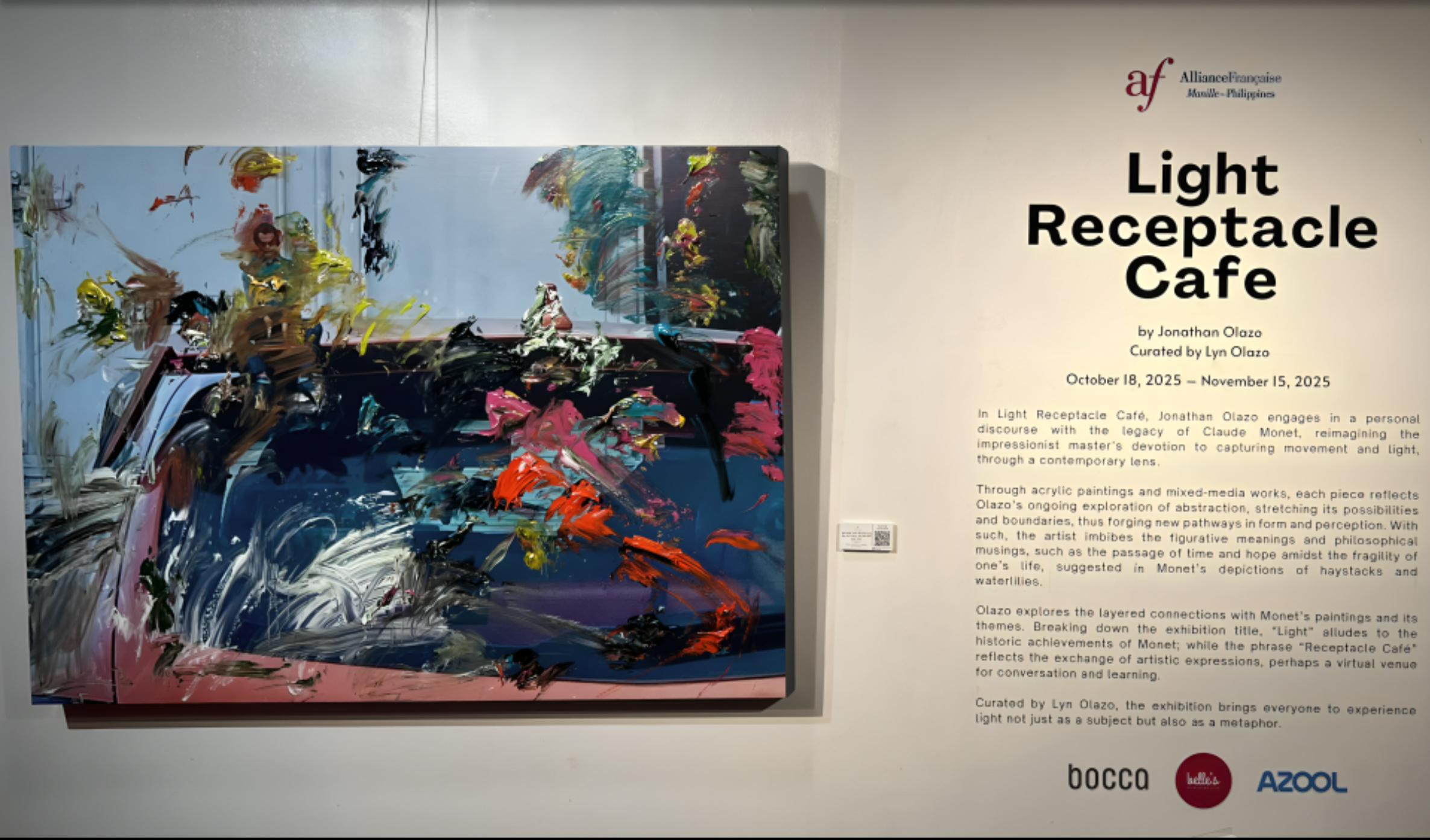 Filipino artist Jonathan Olazo’s latest art exhibition “Light Receptacle Café” is a beautiful reimagining of French master Claude Monet’s devotion to light and time, filtered through a contemporary Filipino lens.