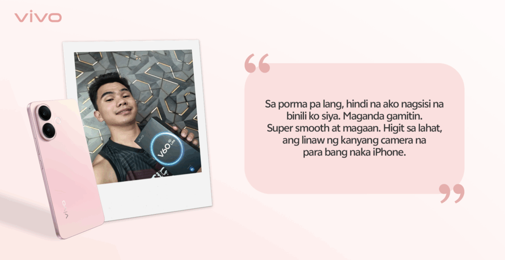 Adding to the growing list of satisfied users, Rashen Lapasanda, a student from Leyte, shared how the vivo V60 Lite in Pop Pink exceeded his expectations.