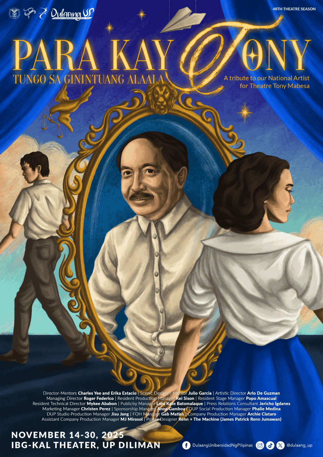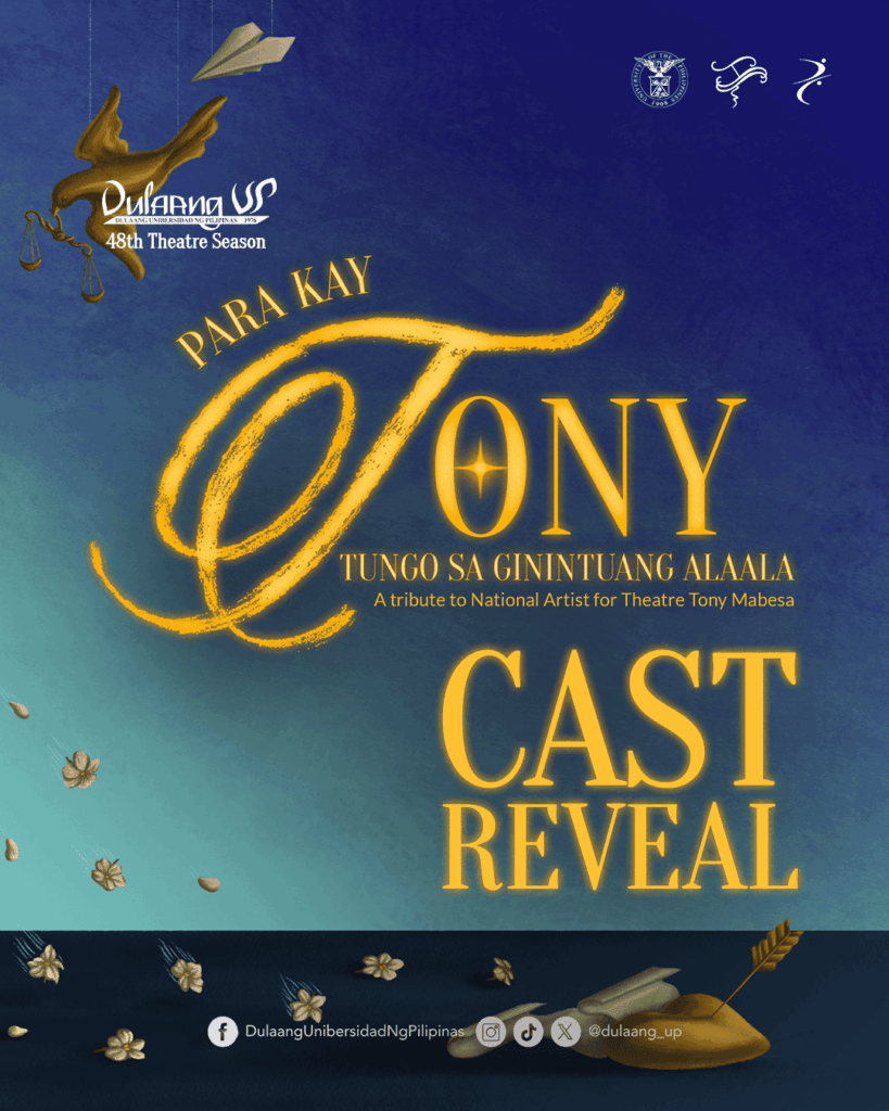 After the success of Nanay Bangis and Mga Anak ng Unos, Dulaang Unibersidad ng Pilipinas (Dulaang UP) returns to the stage by paying tribute to its founder and National Artist for Theater Antonio ‘Tony’ Mabesa. The tribute, titled Para kay Tony: Tungo sa Ginintuang Alaala, is a twin bill showcasing two productions that capture the spirit of Dulaang UP’s nearly five-decade history.