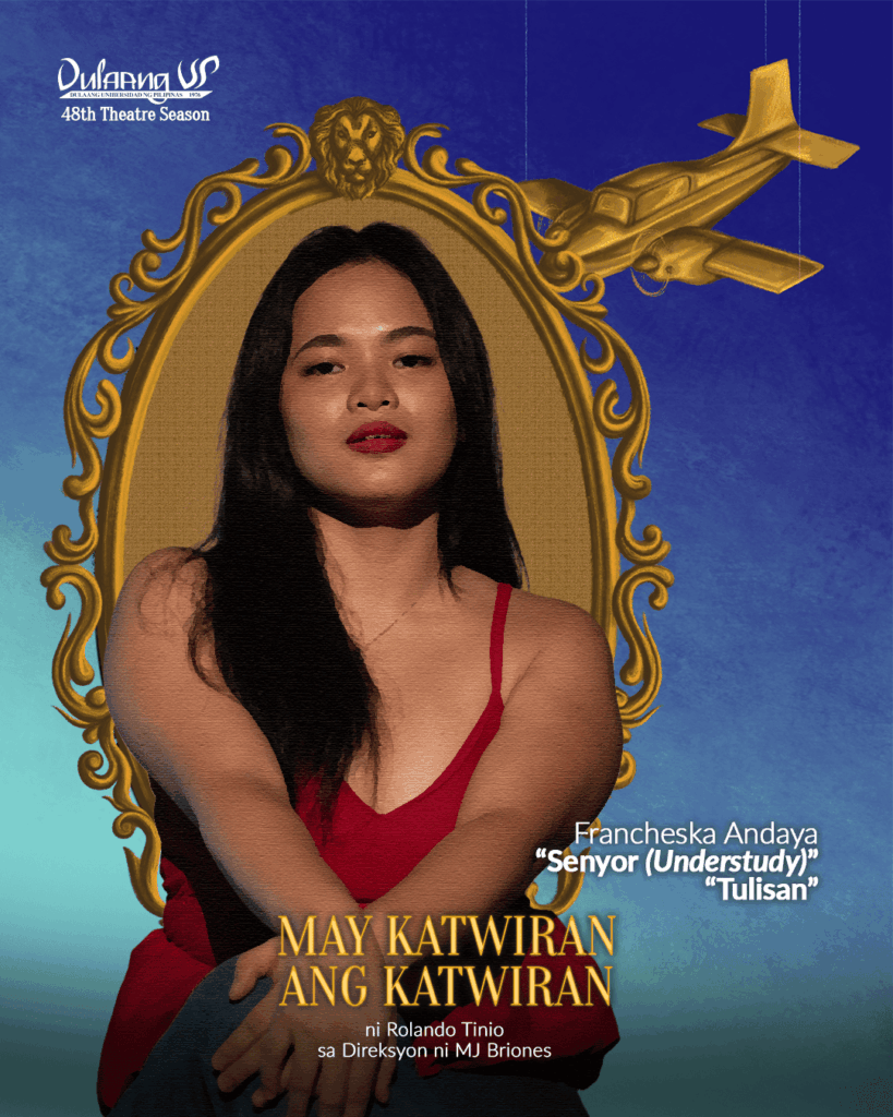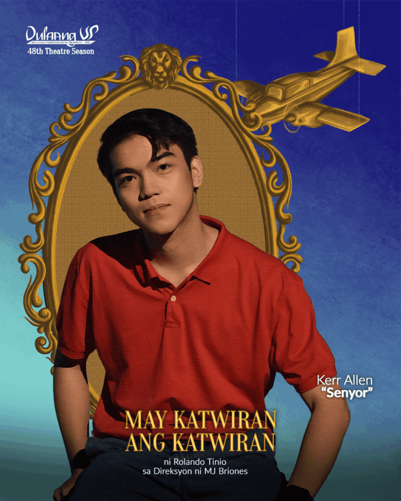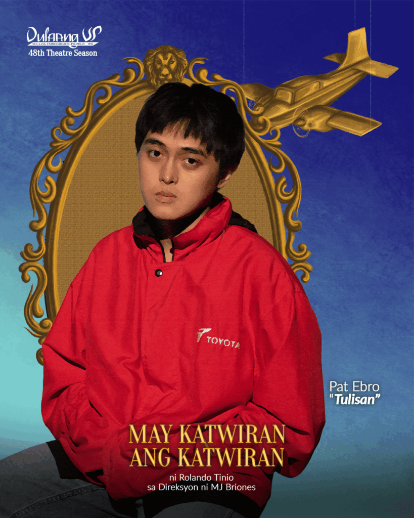 The second play in Para kay Tony features National Artist Rolando Tinio’s May Katwiran ang Katwiran. The plot centers on Senyor, a wealthy haciendero who persuades his servant to join him on a journey across the mountains. Along the way, they encounter obstacles that threaten their survival. The staging is led by Theatre Arts student MJ Briones with director-mentor Charles Yee. Acting in the play are Francheska Andaya, Julianne Quimio, Akin Cullarin, Pat Ebro, Kerr Allen, Camille Fabian, and Daniel Duplon.