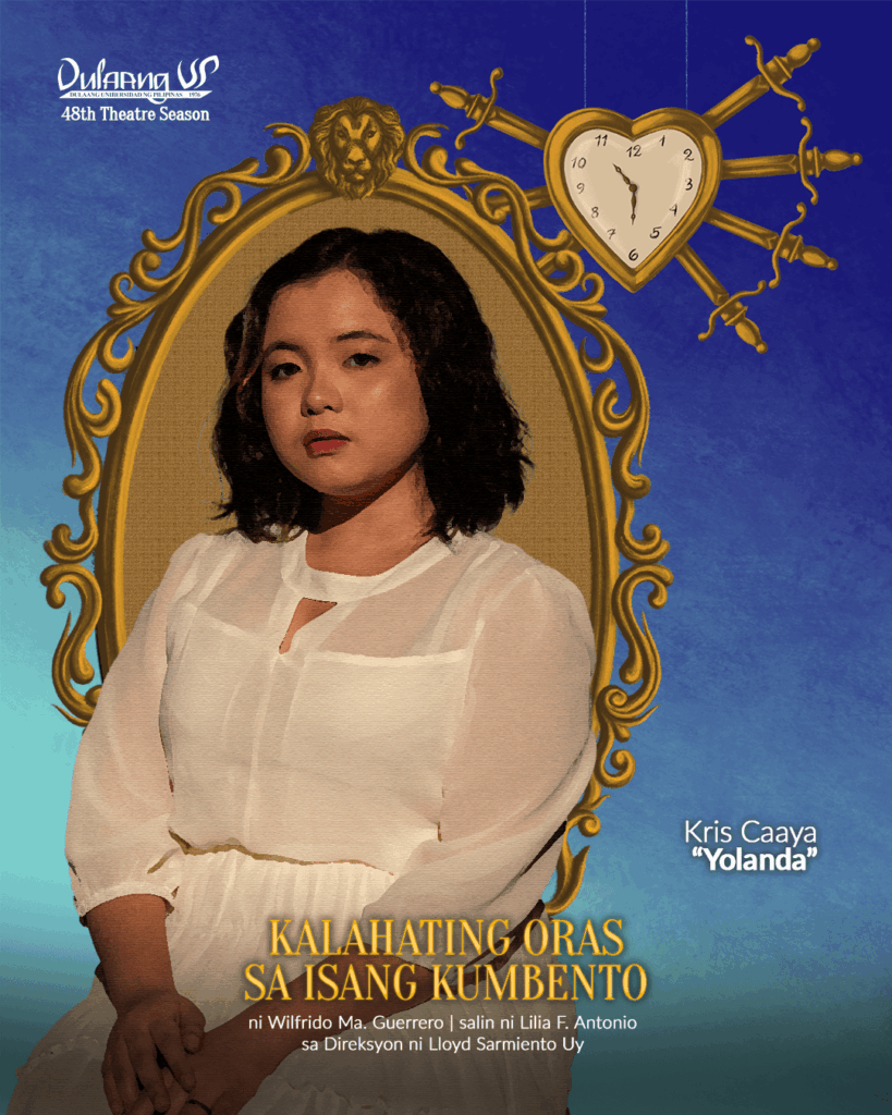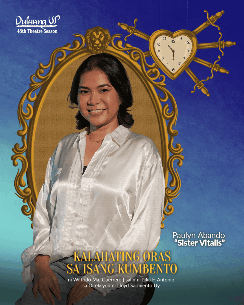 The first half of the twin bill is a staging of Kalahating Oras sa Isang Kumbento by legendary Filipino playwright Wilfrido Ma. Guerrero as translated by Lilia F. Antonio. The story follows Yolanda, a student at a convent school, who seeks comfort and companionship after being expelled.