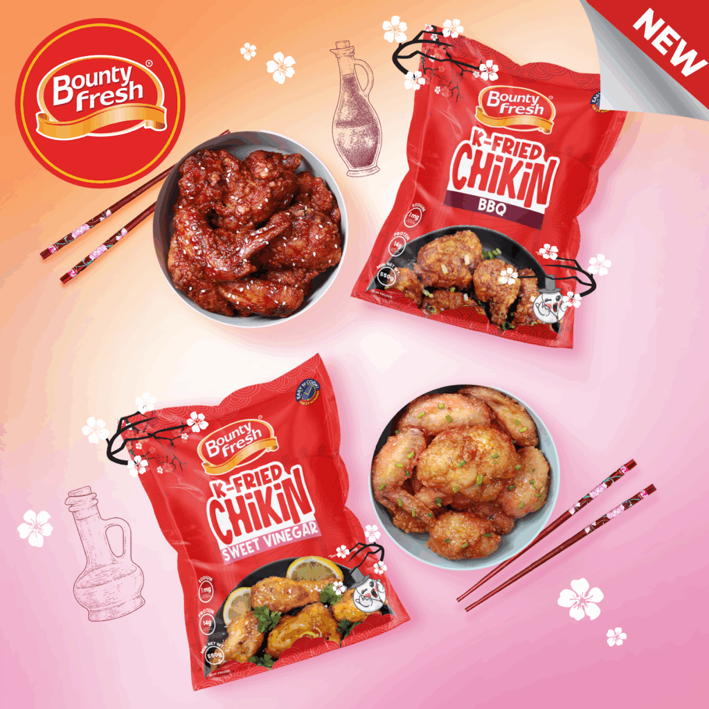 Inspired by the Pinoy fascination with all things Korean, Bounty Fresh’s K-Fried Chikin is a saucy, meaty, 100% all-natural crunchy fried chicken—just the way Koreans love their chicken. Enjoyable both at the dinner table or as a packed meal, it comes in two flavors, BBQ and Sweet Vinegar. It is Bounty’s first-ever, ready-to-cook Korean-inspired chicken treat.