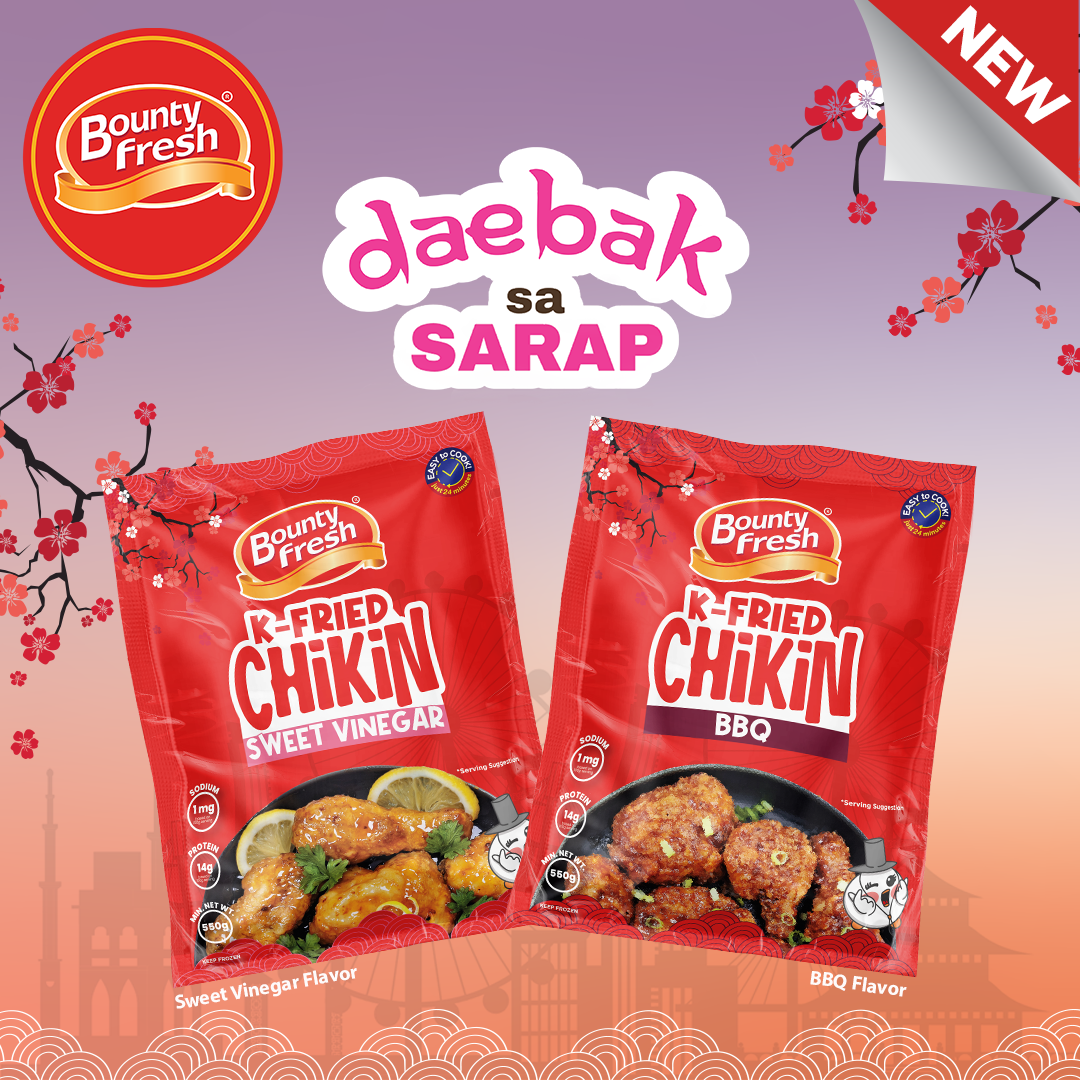 Inspired by the Pinoy fascination with all things Korean, Bounty Fresh’s K-Fried Chikin is a saucy, meaty, 100% all-natural crunchy fried chicken—just the way Koreans love their chicken. Enjoyable both at the dinner table or as a packed meal, it comes in two flavors, BBQ and Sweet Vinegar. It is Bounty’s first-ever, ready-to-cook Korean-inspired chicken treat.