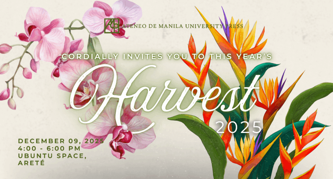 Join the Ateneo University Press as it celebrates its Harvest of new books this December 9, 2025, from 4:00 to 6:00 pm at the Ubuntu Space in the Areté, Ateneo de Manila. Doors open as early as 3:00 pm. The event is open to the public.
