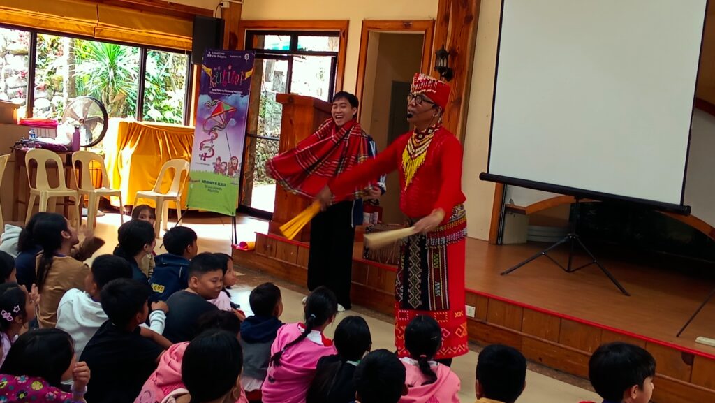 Richard Vilar, an internationally well known storyteller from Butuan City, shares his folktales in a performance art for the Kutitap kids while Marichelle Santos of Bulacan will teach puni making or the art of leaf folding.