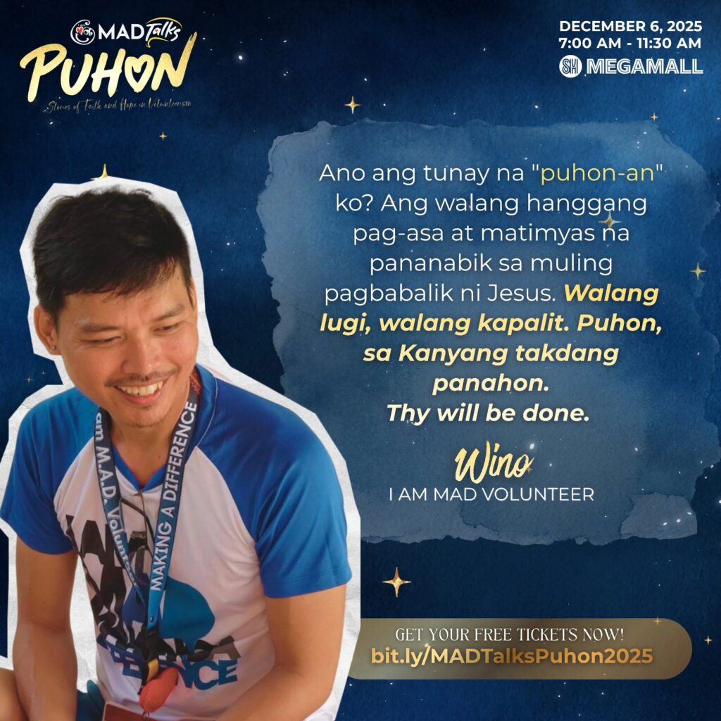 MAD Talks Puhon invites volunteers to trust their God’s unfolding and embrace the moments that are still forming with deep faith and high hopes.