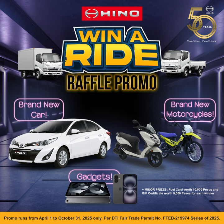 The promo ran from April 1 to October 31, 2025, with DTI Promo Permit No. FTEB-219974 Series of 2025 and was open to all customers who purchased any Hino vehicle nationwide.