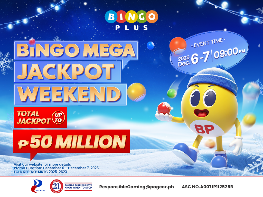 This December 6 to 7, 2025, BingoPlus will be giving away a total jackpot of 50 million pesos to celebrate the season of joy and fortune!