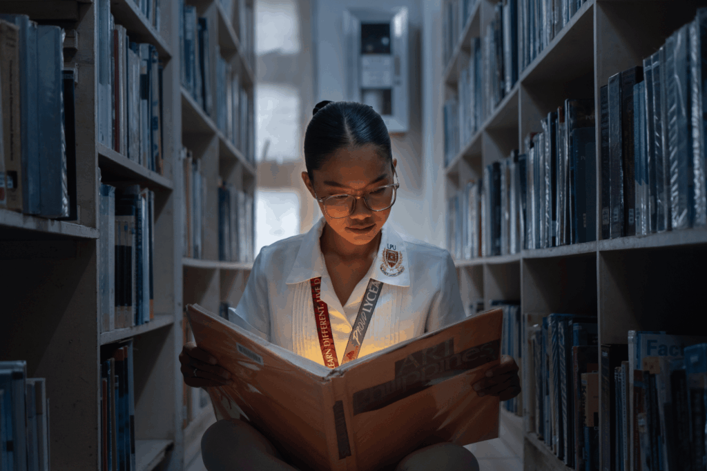 The third-place winner is “The Flame Within” by Shainne Maica Ayap of Lyceum of the Philippines University – Batangas. Set between shelves of books, the photo shows a young woman reading as golden light reflects onto her face, symbolizing an inner fire that fuels her passion.