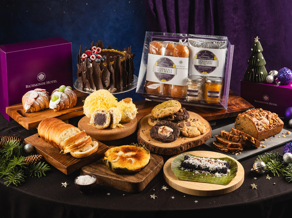 Adding even more happiness to the holidays is Eastwood Richmonde’s Treasure Treats available exclusively for this season. This assortment of goodies—from beautifully assembled hampers, freshly baked pastries, signature ensaymadas, and flavorful holiday hams—are perfect for thoughtful gifting or elevating at-home feasts. Choose from this selection of carefully curated hampers for practical presents that impress: the Sweet Holiday Hamper (PhP 1,975 nett) consisting of banana walnut loaf, quezo de bola and yema ensaymadas, and assorted cookies; the Savory Holiday Hamper (PhP 2,865 nett) featuring sliced muscovado ham, croissant loaf, tablea, fruit jam, and salted egg ensaymada; and the Sampaguita Holiday Hamper (PhP 1,975 nett) containing sliced muscovado ham, Sampaguita dinner rolls, and Sampaguita mango jam.