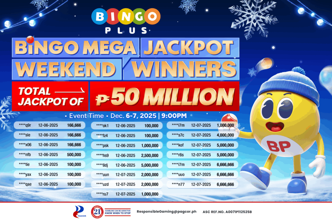 More fun, more prizes this December! It was a lucky weekend for BingoPlus players as the Bingo Mega Jackpot Weekend successfully concluded on December 7, 2025.