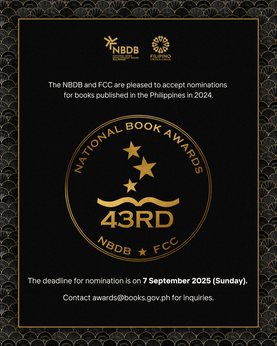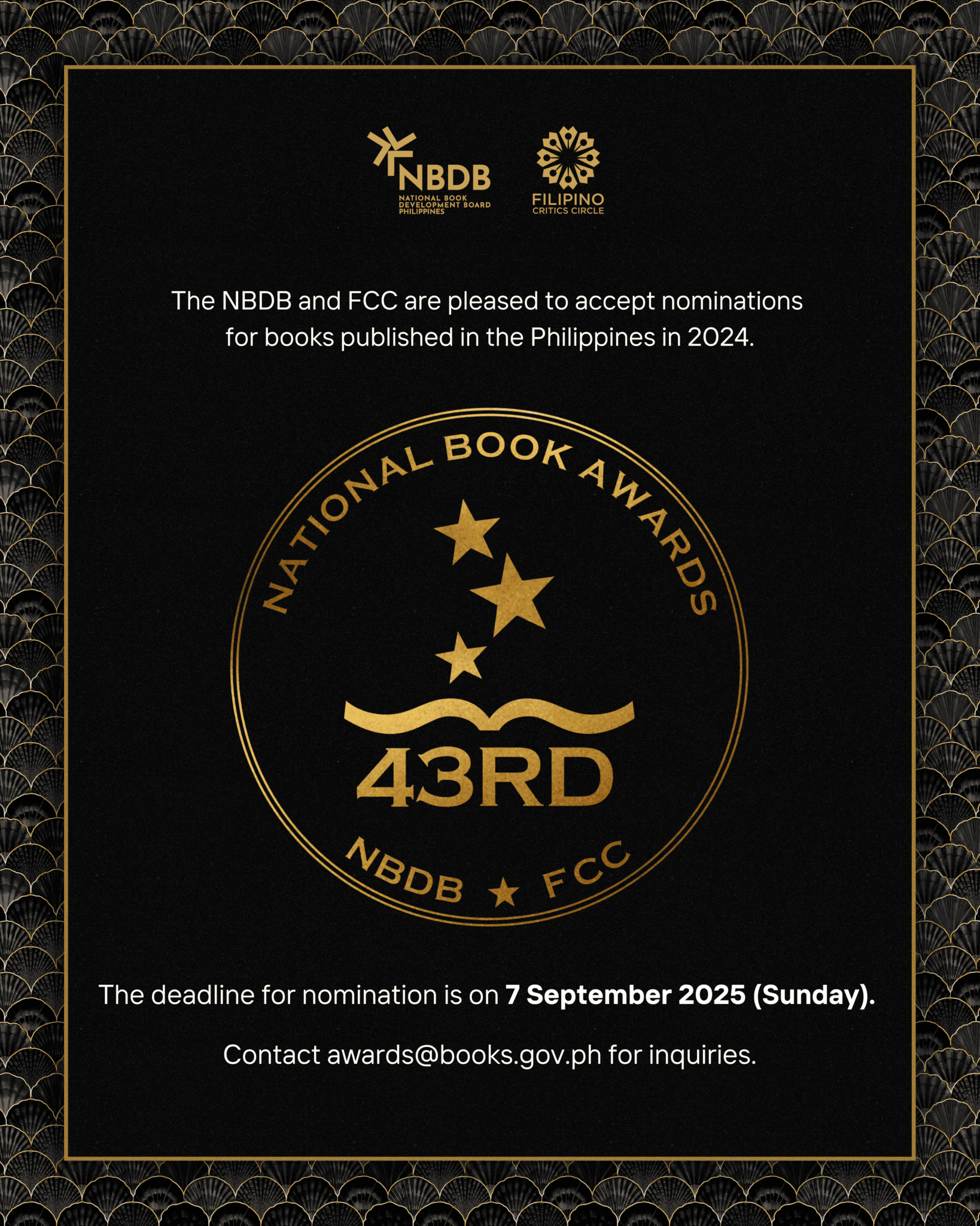 Manila, Philippines — The National Book Development Board (NBDB) and the Filipino Critics Circle (FCC) have announced the finalists of the 43rd annual National Book Awards (NBA), which honors the most outstanding books written, designed, and published in the Philippines.