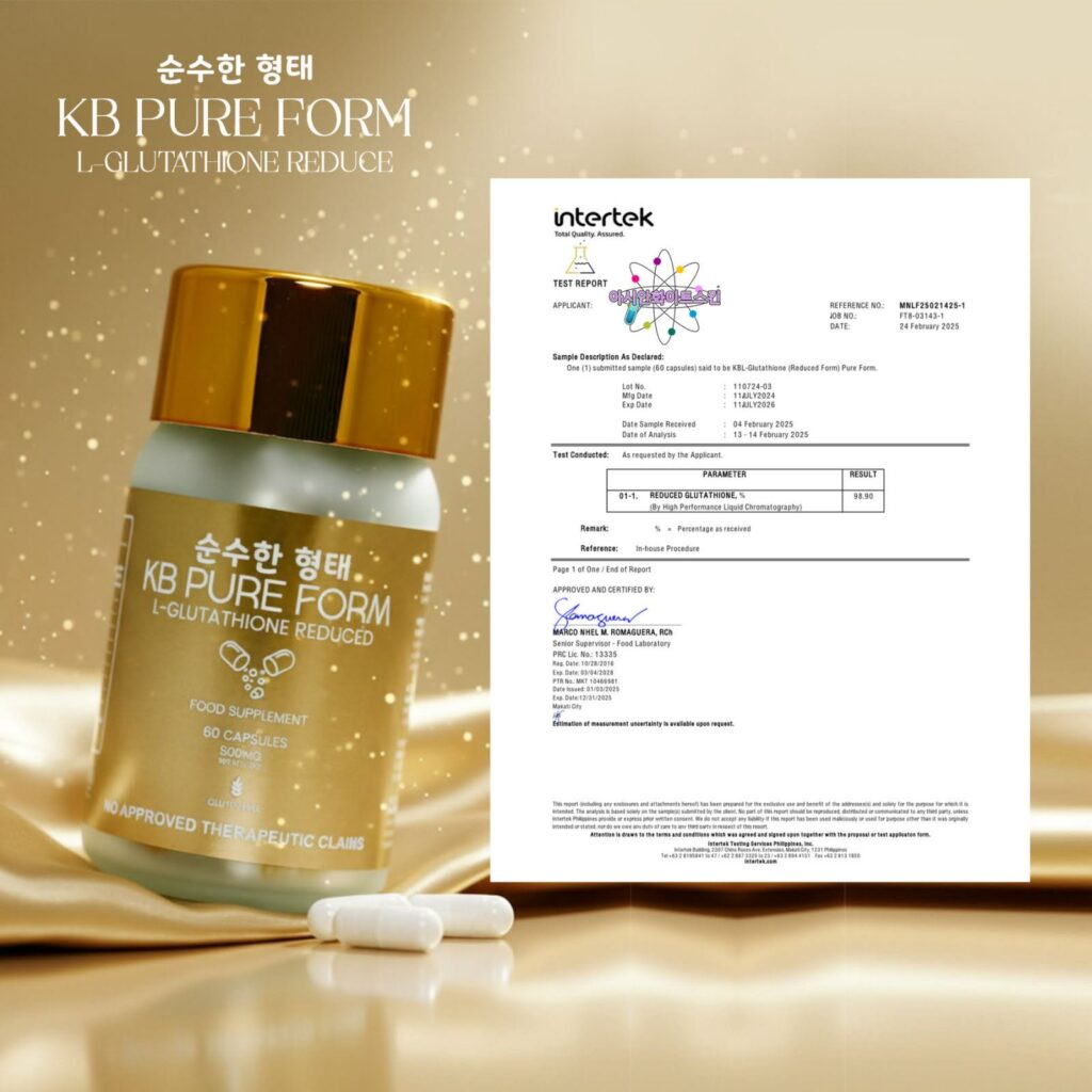 VIA GRAPHIC PLUS (with KB) — For almost 21 years, KB Glutathione plus NAC + KB Rosehips Vitamin C has been a pioneering combination in the glutathione category. From its origin with the first manufacturer, production moved to Asian White Skin Manufacturing, and the excellent feedback from consumers has sustained us for this long. If you review the lab tests we’ve posted, you’ll see content well over 500 mg, confirming that our product’s label is accurate and 100% authentic.