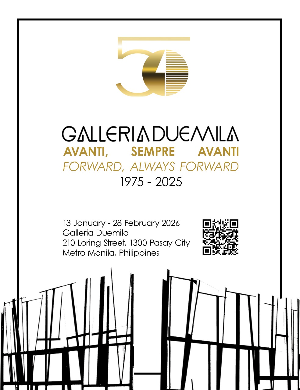 December 5, 1975 marks the 50th anniversary of the founding of Galleria Duemila, the longest-running art gallery in the Philippines today. Many of the illustrious thirty-seven artists featured in AVANTI, SEMPRE AVANTI / FORWARD, ALWAYS FORWARD represent symbiotic relationships that blossomed into life-long friendships with Silvana Ancellotti-Diaz.