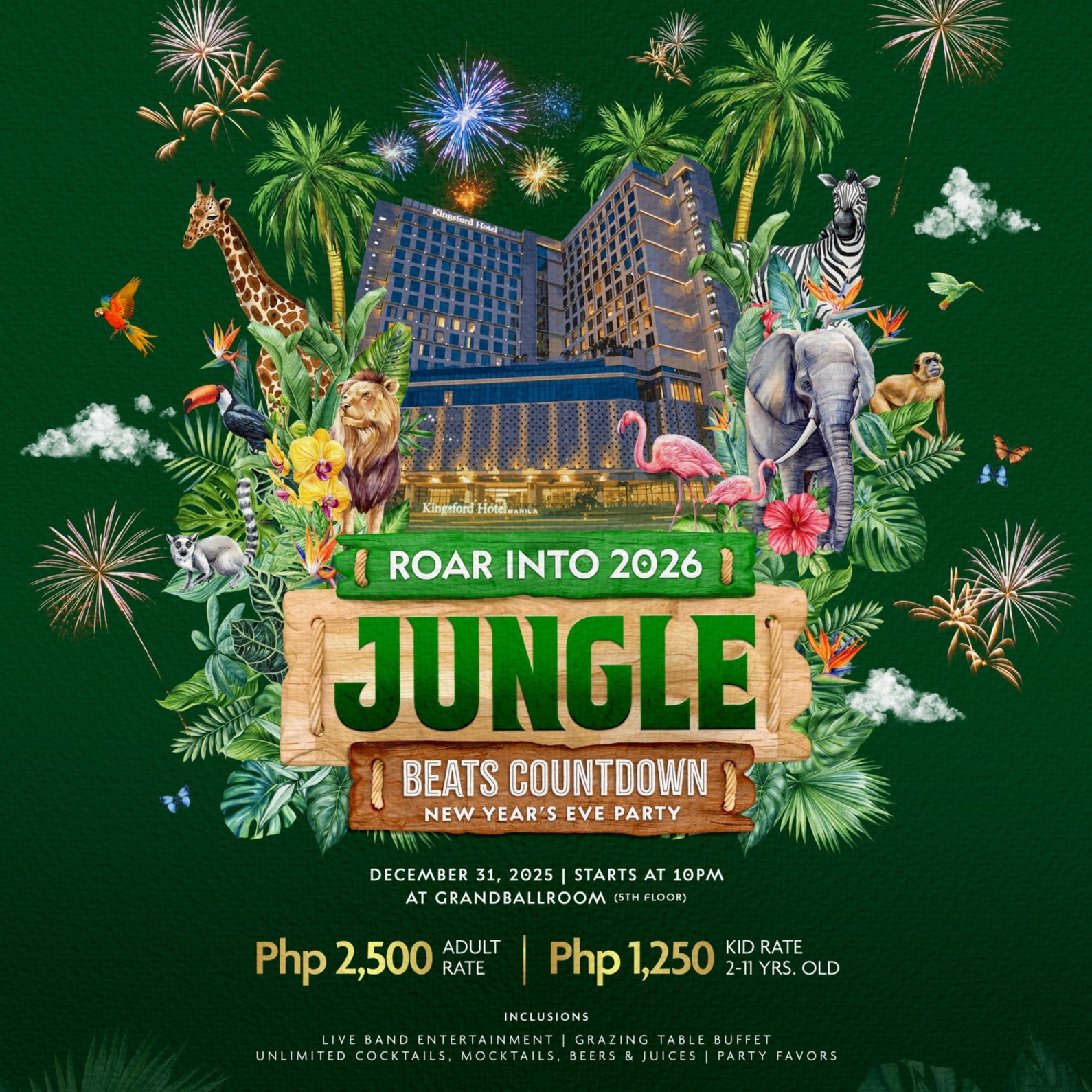 As the clock ticks closer to midnight, the excitement builds at the Grand Ballroom with “Roar into 2026: Jungle Beats Countdown.” Starting at 10:00 PM, guests are invited to dance, cheer, and toast to the New Year amid live band entertainment, nonstop party vibes, and an electric crowd. The celebration is made even more indulgent with a festive grazing table, unlimited cocktails, and exciting raffle draws, all leading up to a high-energy countdown to 2026. Guests are encouraged to wear their Jungle Chic Holiday Glam New Year look for a chance to win the Best Dressed Award, adding a stylish and playful highlight to the night. Tickets are priced at P2,500 for adults and P1,250 for kids ages 2-11 years old.