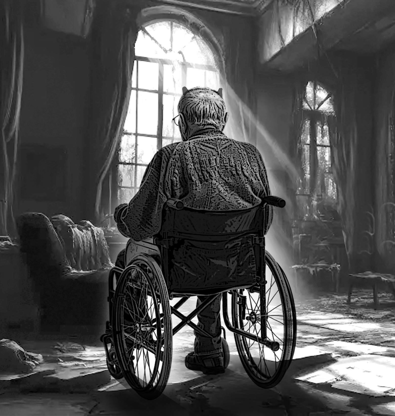 “I prefer the fire,” a weak voice said in the thick haze of darkness molten by the candles. This voice came from an old pale man in a wheelchair, just a few feet beside the table, staring at the fire. The man had a bonnet on. He was in a violet robe. “My firstborn. What brings you here?”