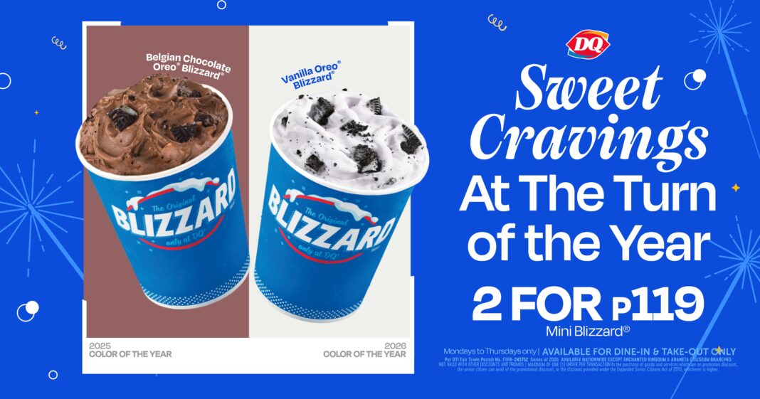 This special offer is available for dine-in and takeout in all DQ stores nationwide, Mondays to Thursdays from January 7 to 29, 2026, only, so gather your friends, stop by your nearest DQ, and start the year on a sweet note with this delectable Blizzard duo!