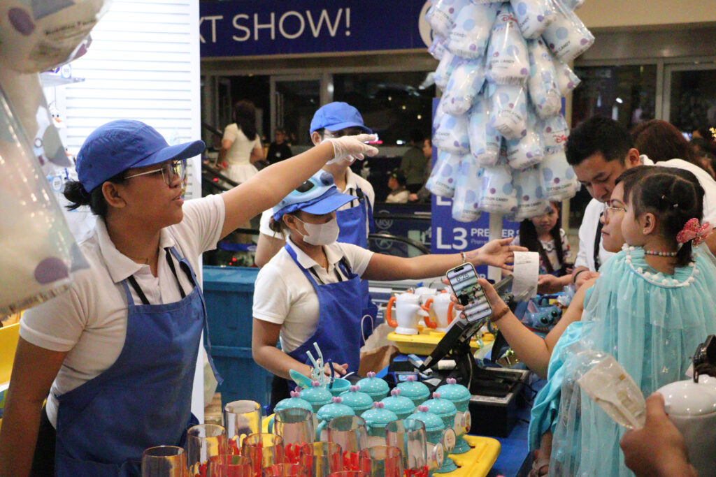 SM Mall of Asia Arena personnel serve with excellence in their UNIQLO Philippines T-shirts.