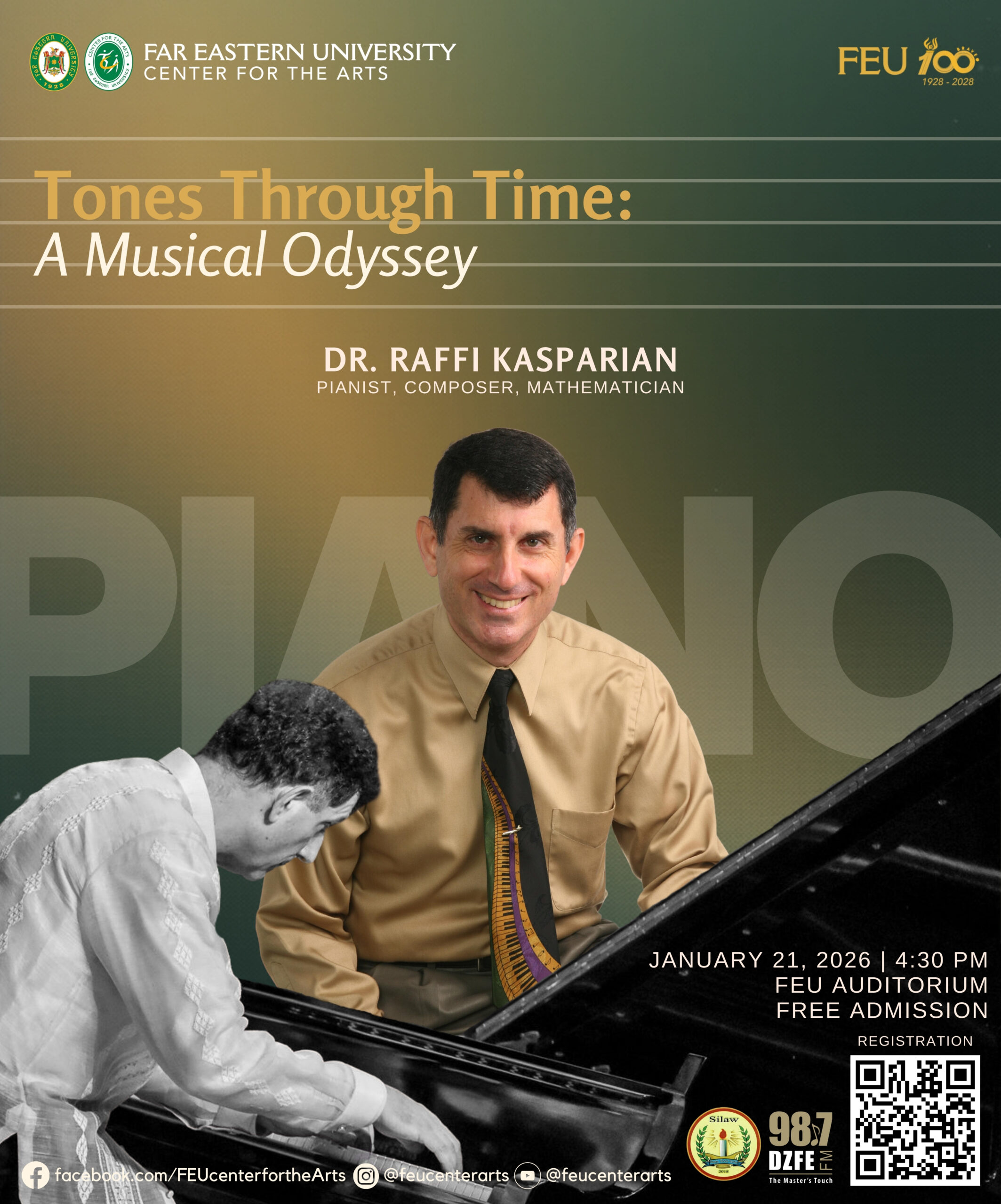 This concert, produced by the FEU Center for the Arts with the support of the Silaw Foundation and DZFE 98.7 FM, forms part of Dr. Kasparian’s 2026 Philippine tour, which includes performances in Paoay – Ilocos Norte, Holy Angel University in Angeles City, the University of Santo Tomas Conservatory of Music, and the Manila Pianos Showroom.