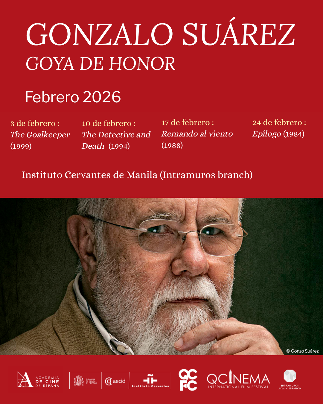 To honor Spanish filmmaker Gonzalo Suárez, recipient of the Goya de Honor / Honorary Goya Award 2026, the Instituto Cervantes de Manila will present at its Intramuros branch a special series featuring four films directed by Suárez. Screenings will take place every Tuesday in February at 2:00 PM, and admission is free.