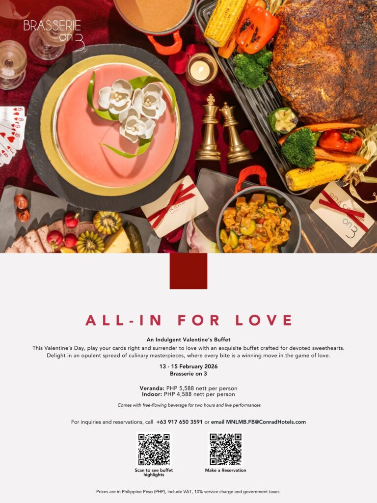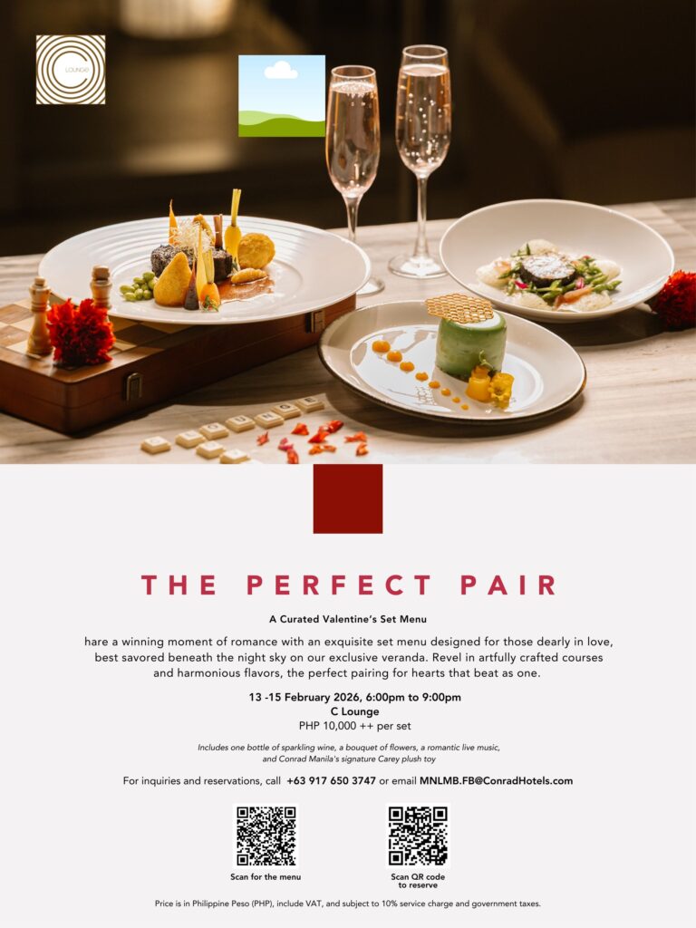 via Graphic Plus | MANILA, PHILIPPINES — Celebrate Love Month with SM Hotels Valentine’s Day indulgent buffets and romantic dining experiences this February. Discover the offers from Conrad Manila, Lanson Place, Pico de Loro Cove, and Taal Vista Hotel.
