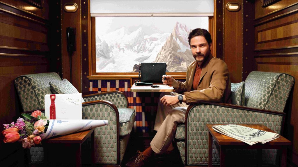 This Valentine’s Day, Montblanc continues its “Let’s Write” brand campaign with a new chapter, starring actors Joey King and Daniel Brühl. Set aboard the Montblanc Voyage of Panorama, a vintage-inspired train car crossing imagined landscapes first introduced in the “Let’s Write” short film by Wes Anderson, the Valentine’s Day campaign captures a couple in a heartfelt moment of reflection in the midst of their journey together.
