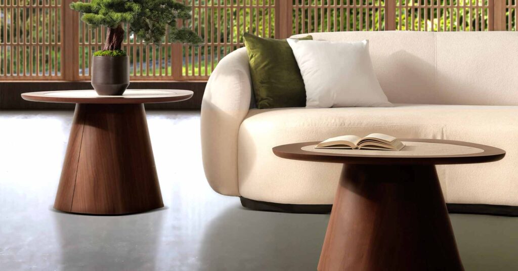 Introduce wood and other natural as statement pieces, such as accent chairs, side tables, or shelving. Complement them with neutral fabrics and soft lighting to enhance the calming, organic feel.