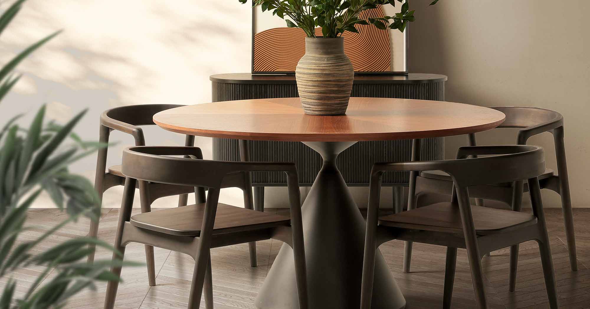 Style shelves, tables, or consoles with ceramic vases, clay décor, or textured planters. Pair these accessories with clean-lined furniture and neutral tones to let the materials stand out.