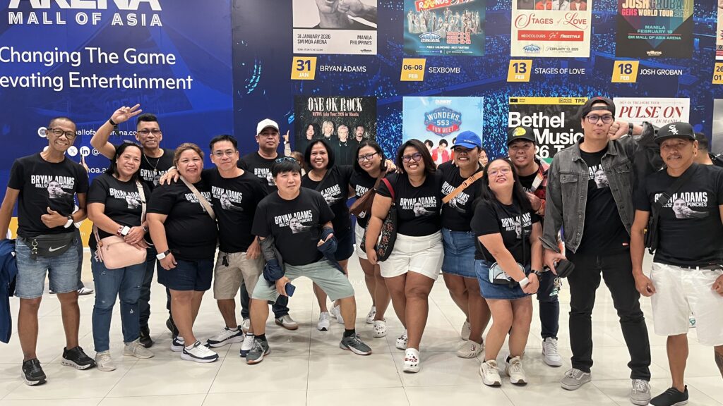 The atmosphere was electric from the moment the doors opened. Lines stretched from merchandise booths to photo walls as groups, from couples to barkadas of twenty, waited for Bryan Adams’ return after three years.