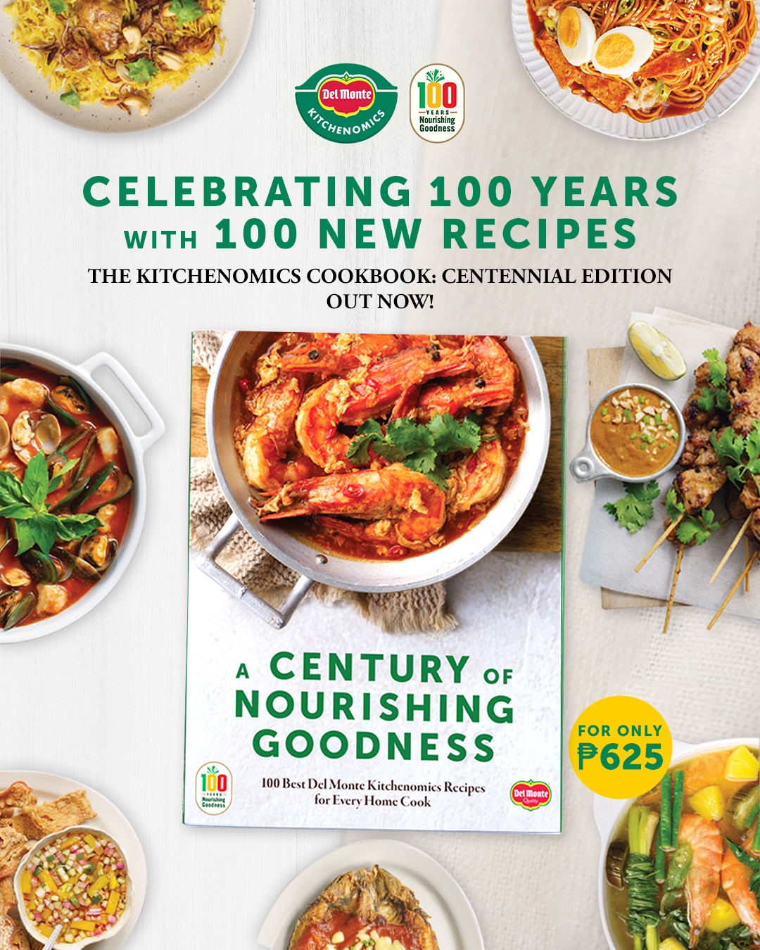 Priced at Php 625, the limited-edition Del Monte Kitchenomics Centennial Cookbook is now available in major bookstores: National Bookstore, Fully Booked, and Book Sale in Metro Manila. Coming soon to provincial branches!