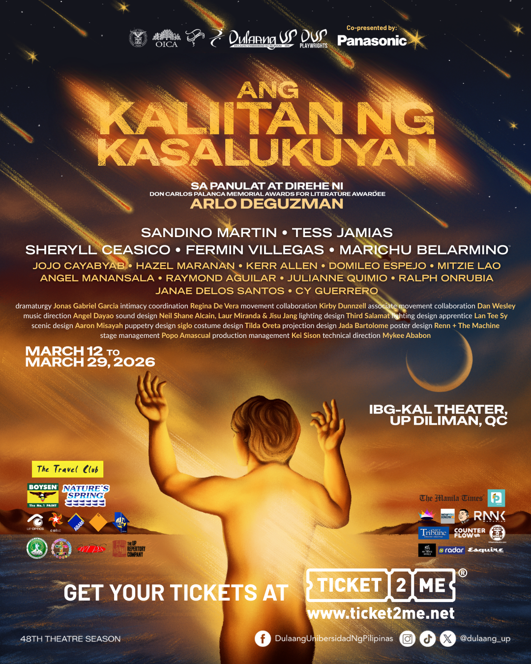 The production will run from March 12 to March 29, 2026 at the IBG-KAL Theater, UP Diliman; Thursdays and Fridays at 7:30PM, and Saturdays and Sundays at 2:30PM and 7:30PM.