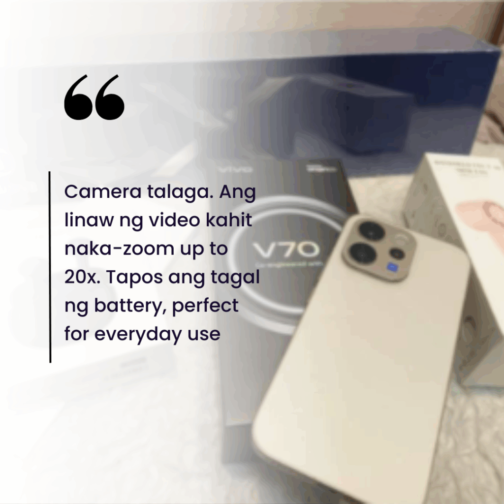 “Maganda na yung camera ng V60, pero mas pinaganda at pinalinaw pa ni V70 with AI Magic Weather. Mahilig kasi ako sa photography… importante sa akin yung camera, performance, battery life, at storage.”