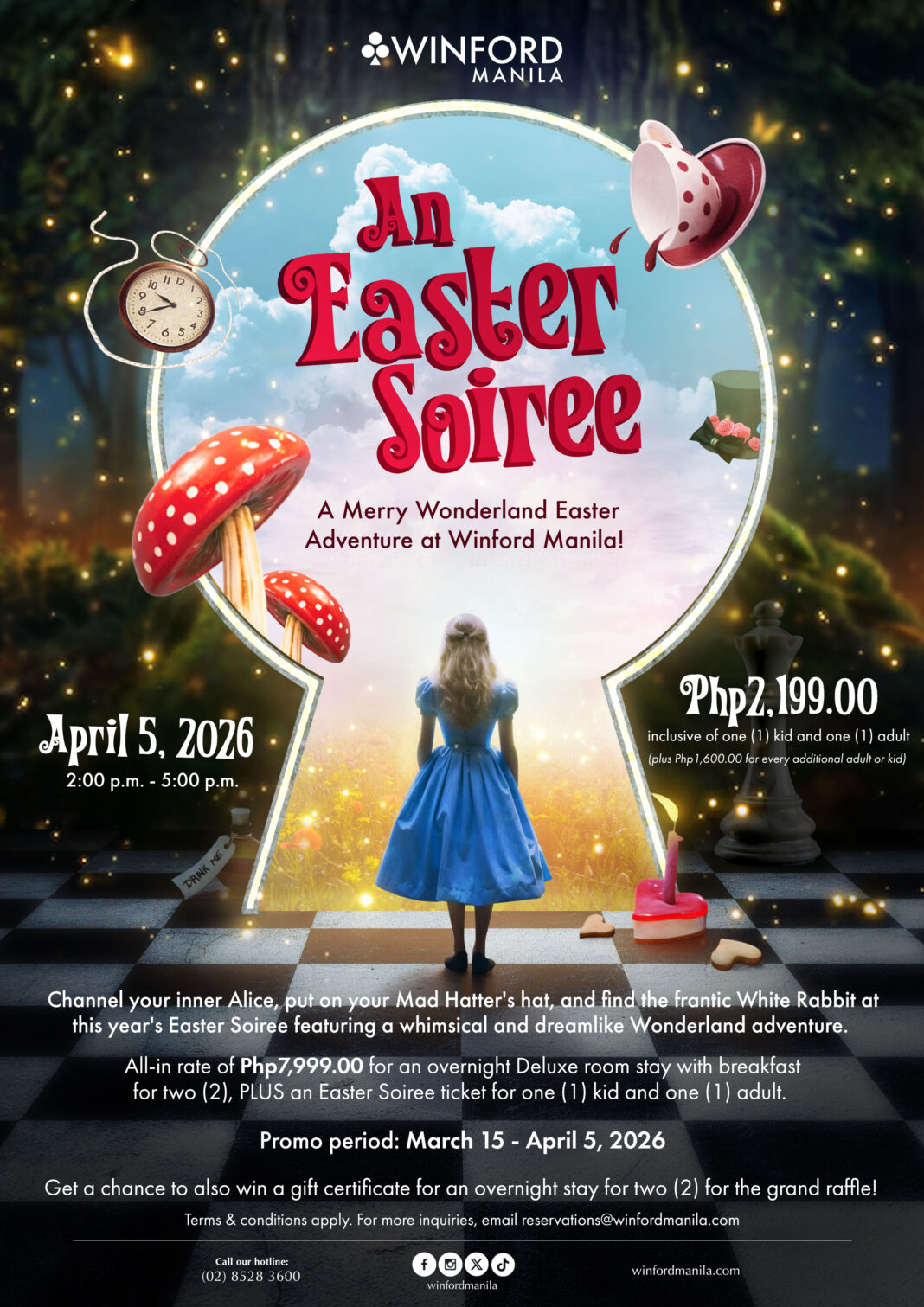Via GRAPHIC PLUS — Step into a wonderland adventure filled with color, fun, and festive charm this Sunday, April 5, as Winford Resort & Casino Manila brings you an Easter Soiree at Winford Ballroom, from 2:00 p.m. to 5:00 p.m.