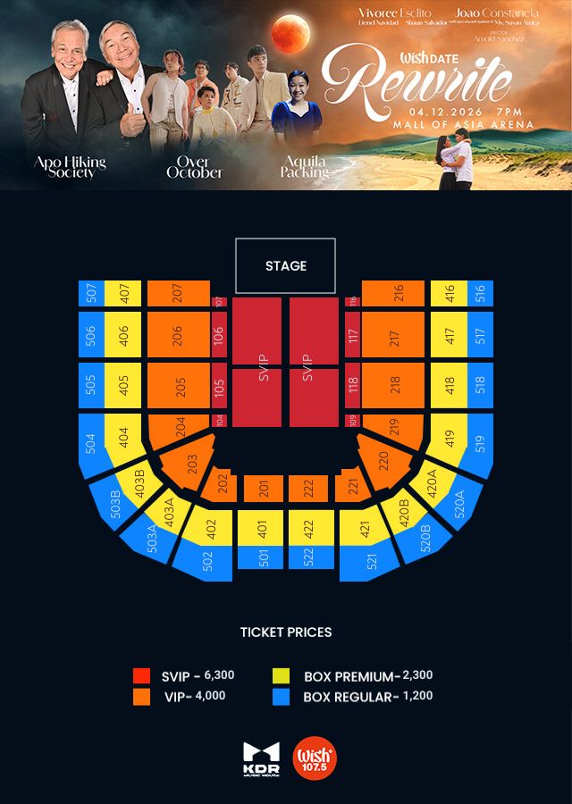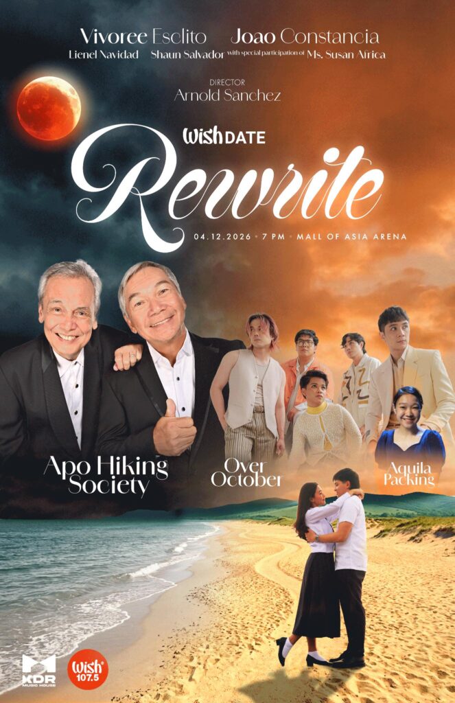 A new chapter unfolds for Wishdate: Rewrite as the concert celebrates the power of live music and storytelling. Now on its 20th edition, the show features performances from Apo Hiking Society, Over October, and Aquila Packing Company, bringing waves of emotion to audiences.