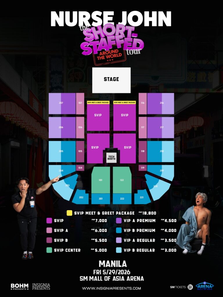 Online personality and registered nurse John Dela Cruz, widely known as Nurse John, brings his comedy tour to SM Mall of Asia Arena. The show marks his first live performance in the Philippines as part of his first world tour, sharing humorous stories and real life experiences from the nursing profession.