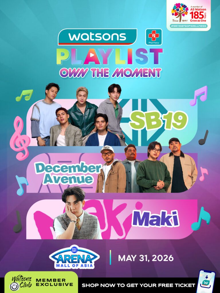 The generation’s OPM powerhouse headlines this year’s Watsons Playlist alongside SB19, December Avenue, and Maki. With each artist bringing their own interpretation of love, challenges, and hope, the event promises a one‑of‑a‑kind collaboration that blends their music and stories like never before.
