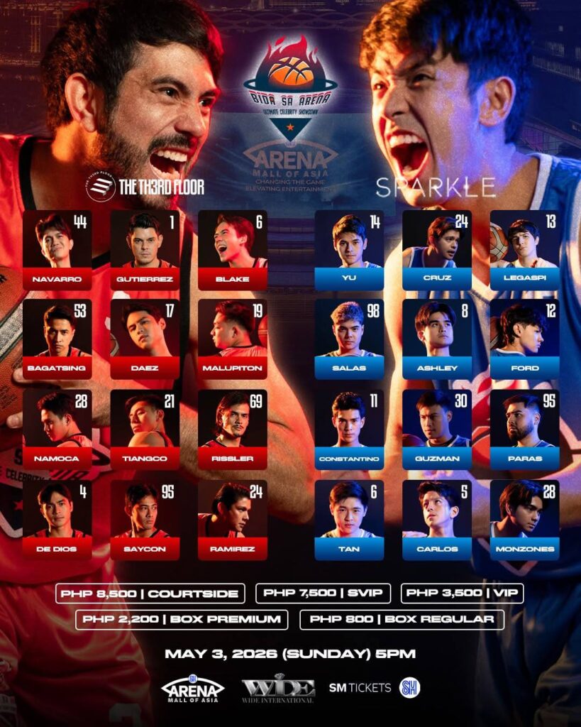 Gerard Anderson and David Licauco battle head on at the Bida sa Arena Ultimate Celebrity Showdown. Displaying skill not only on screen, but on the basketball court, the two team captains will showcase camaraderie and friendly competition, featuring the shining stars behind the Philippine film and entertainment industry.