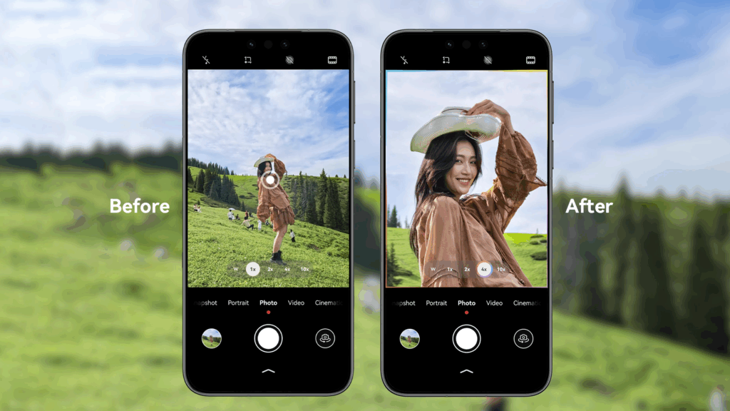 The all-new AI Composition feature brings professional-grade imaging straight to your pocket. Trained on over 500,000 professional photographic works, the system intelligently analyzes the environment in real time, assessing subjects, leading lines, lighting, and overall visual balance. The viewfinder overlays subtle, intuitive composition hints directly on the screen. It automatically suggests the perfect crop or optimal zoom to help take perfectly balanced, professional-looking framing without the complicated setup.